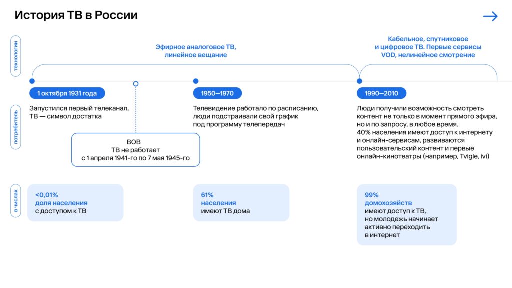 До 1990-х на телевидении в России не было коммерческой рекламы в привычном нам понимании: на экранах транслировали достижения отечественной промышленности, созданные по заказу государства. Полноценный рекламный рынок на ТВ сформировался лишь после распада СССР: появилось несколько крупных сейлз-хаусов, которые контролировали закупку на основных каналах, а медиапотребление выглядело как линейный просмотр роликов в перерывах между передачами. Охватить рекламой в те годы можно было до 95% жителей России — если ролик выходил в прайм-тайм.