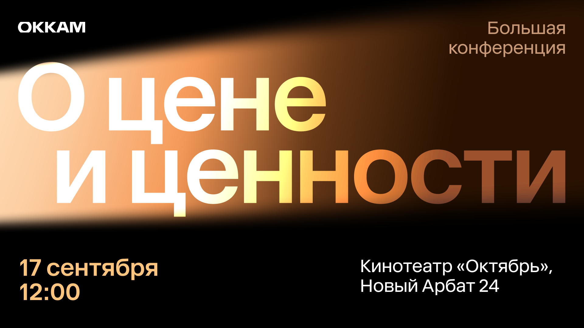 Мы возвращаемся с Большой конференцией Okkam, чтобы переосмыслить рынок через призму цены и ценности — поговорить, какие возможности в медиа, креативе, e-commerce, ритейле и ESG приносят результат уже сегодня.