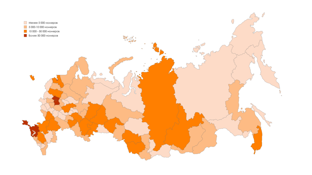 Россия: 8 номеров на 1 000 жителей