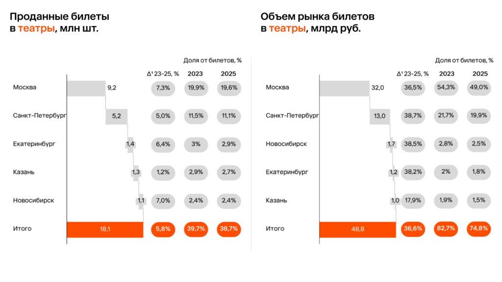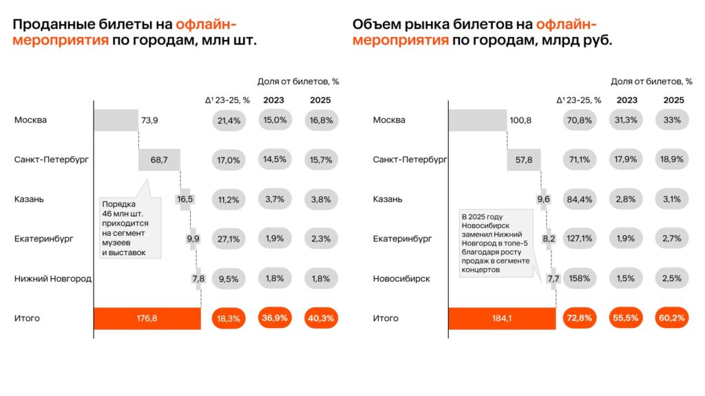 На крупнейшие города в 2025 году приходится порядка 60% от всех реализуемых билетов на шоу относительно 27% в 2023 году.