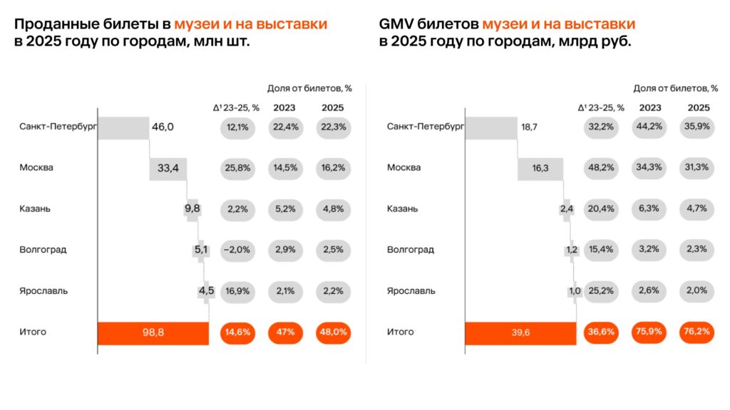 Также в топ-5 городов в сегменте музеев и выставок вошли Казань, Волгоград и Ярославль.