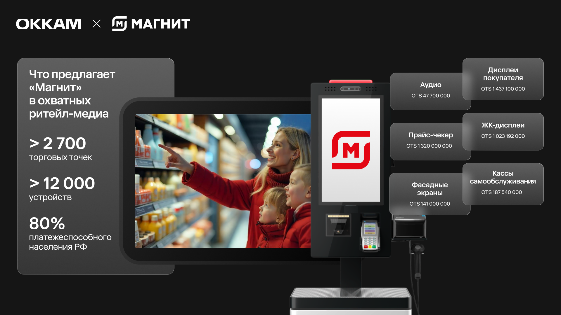 Okkam Trade Marketing — партнер «Магнита»: мы помогаем брендам в подборе наилучших форматов для размещения, разрабатываем оптимальный медиамикс и подход к планированию рекламных кампаний, помогаем с баингом, запуском, отчетностью и замером эффективности. Подробнее о каждом формате и практических кейсах в категории non-FMCG эксперты Okkam и «Магнита» рассказали на вебинаре.