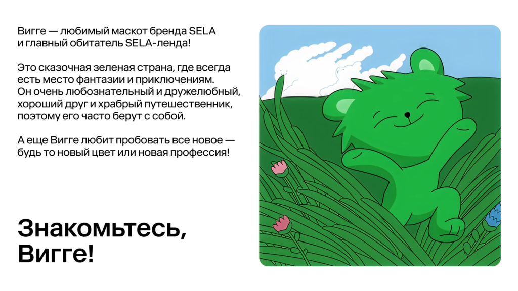 Бренд SELA поддерживает семейные ценности и регулярно запускает спецпроекты для детей. Один из них — «Вселенная Вигге», ориентированная на дошкольников и школьников. Маскот Вигге создан специально для общения с детьми, поэтому все инициативы строятся вокруг их интересов и игрового опыта: дети ищут эмоции и увлекательное взаимодействие с персонажами, а родители ценят комфорт, удобство и полезный досуг.