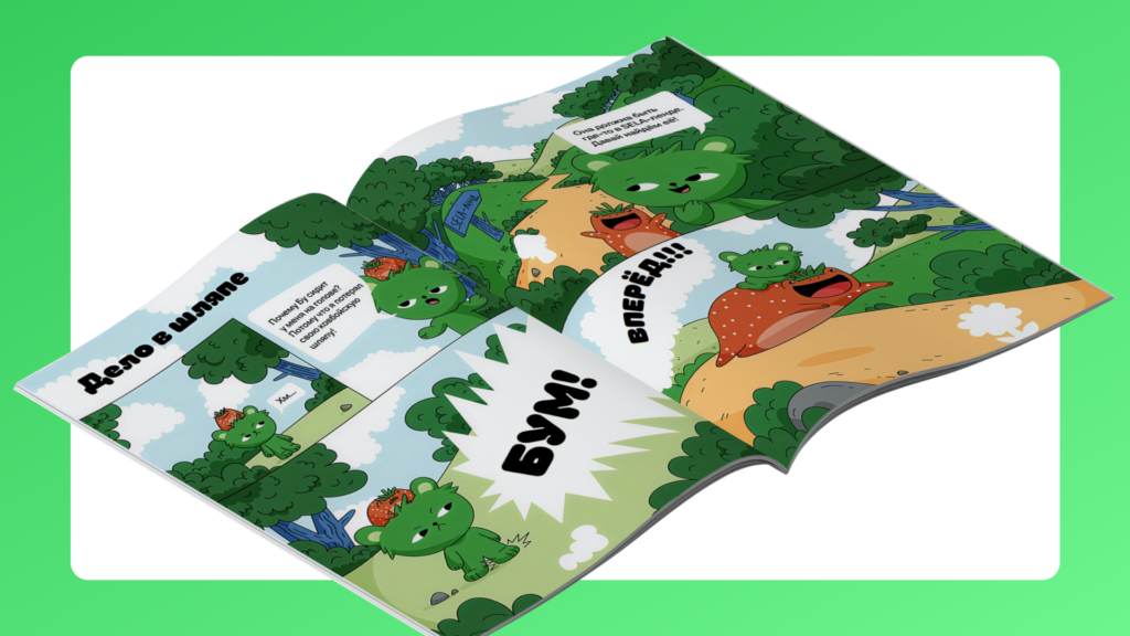 Формат журнала — полноценное печатное издание, которое ребенок захочет листать, раскрашивать и забрать с собой после поездки. Внутри собрано все, что делает путешествие увлекательным: комиксы, головоломки, задания и раскраски.
