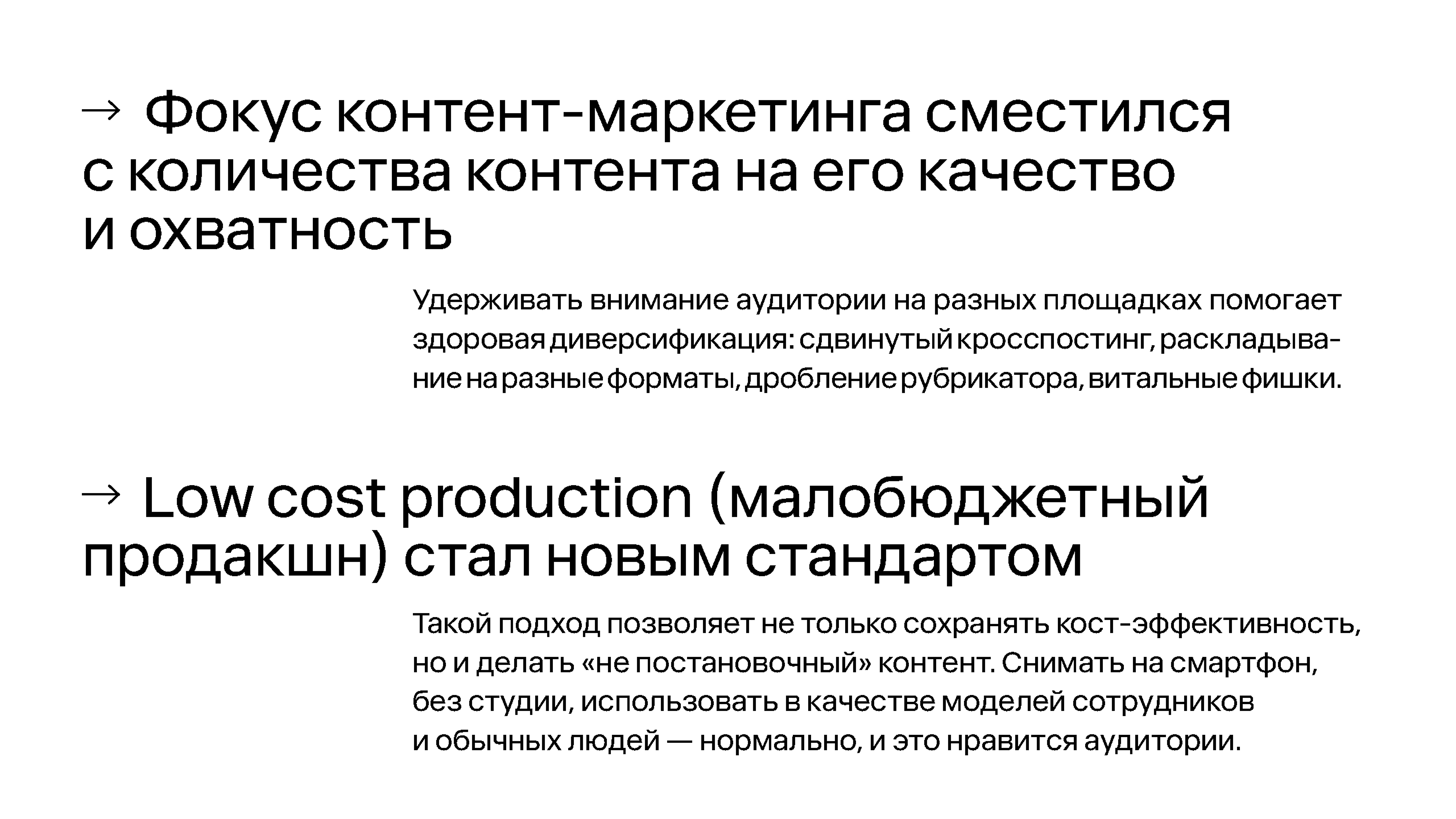 Делая это исследование, мы старались ответить на 3 вопроса: что уже произошло на рынке, как бизнесу оставаться актуальным в контенте, и чего ждёт сама аудитория. Разбираться нам помогали коллеги из VK, «Дзен», «Пятница!», WildJam, Skillbox и mave_digital.